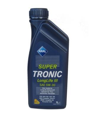 Aral Super Tronic LongLife III SAE 5W30-специально разработано для автомобилей Volkswagen/Audi с целью обеспечения максимальной защиты и чистоты двигателя,а также увеличения срока службы фильтра выхлопных газов.Aral Super Tronic LongLife III SAE 5W30 может применяться как в бензиновых,так и в дизельных двигателях. Спецификации:VW-Norm 504 00 и 507 00
